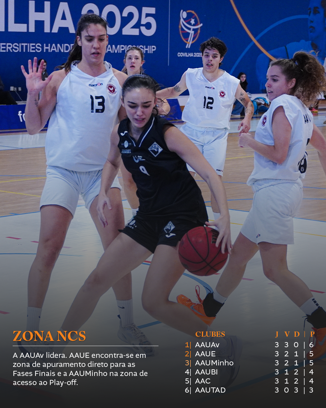 Após os primeiros jogos desta fase de apuramento, o destaque vai para a equipa da AAUAv, que assume a liderança do grupo com 6 pontos, fruto de três vitórias em três jogos disputados. Também em lugar de apuramento, a equipa da AAUE e da AAUMinho, ocupam a 2ª e 3ª posição do grupo, respetivamente, também com 5 pontos.
